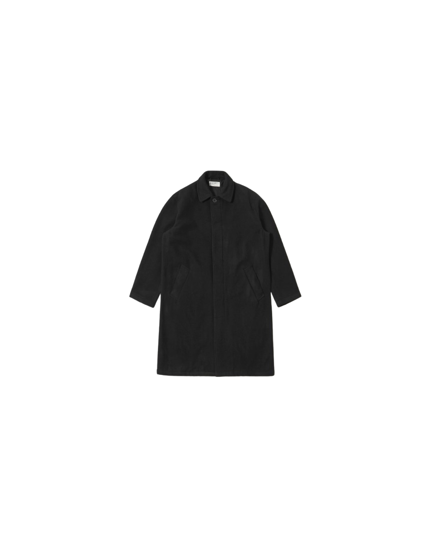 For those looking for that classic Mac styling. This coat sits below the knee, with a concealed front placket, raglan sleeves and two classic hand-warmer welt pockets, all in a straight silhouette.