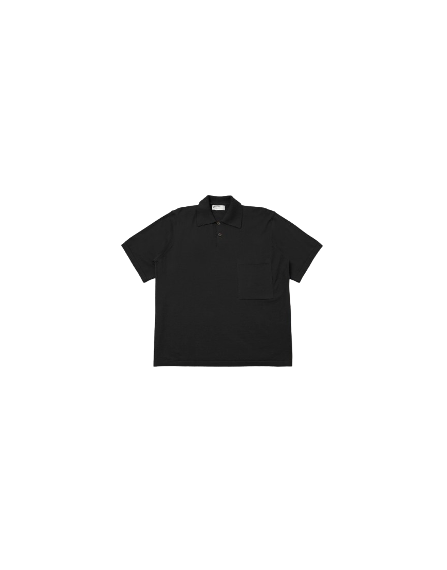 S/S Pullover Knit is an oversized, boxy fit, short sleeved sports-inspired polo shirt, with a two-button placket and a single chest patch pocket.